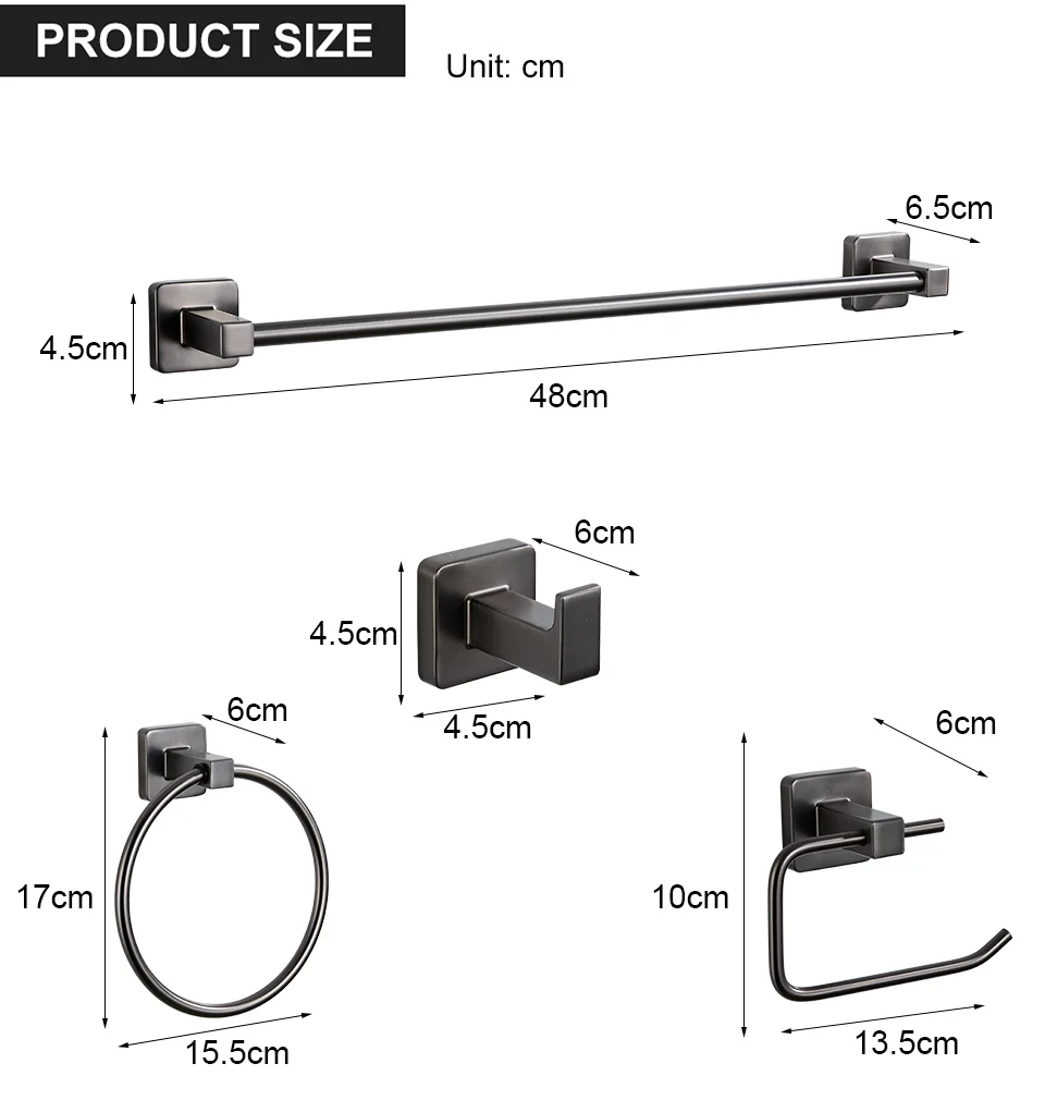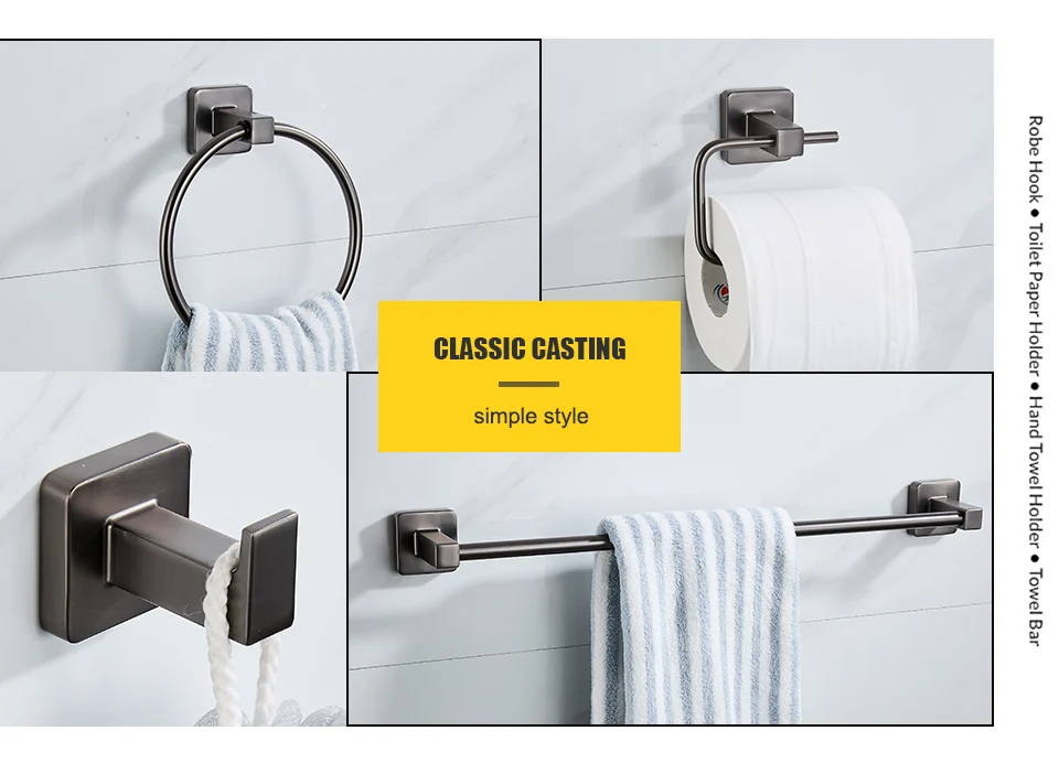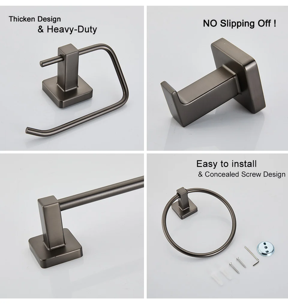 Gun gray Bathroom Accessories Sets Towel Holder Bar Rack Hooks all Mount Toilet